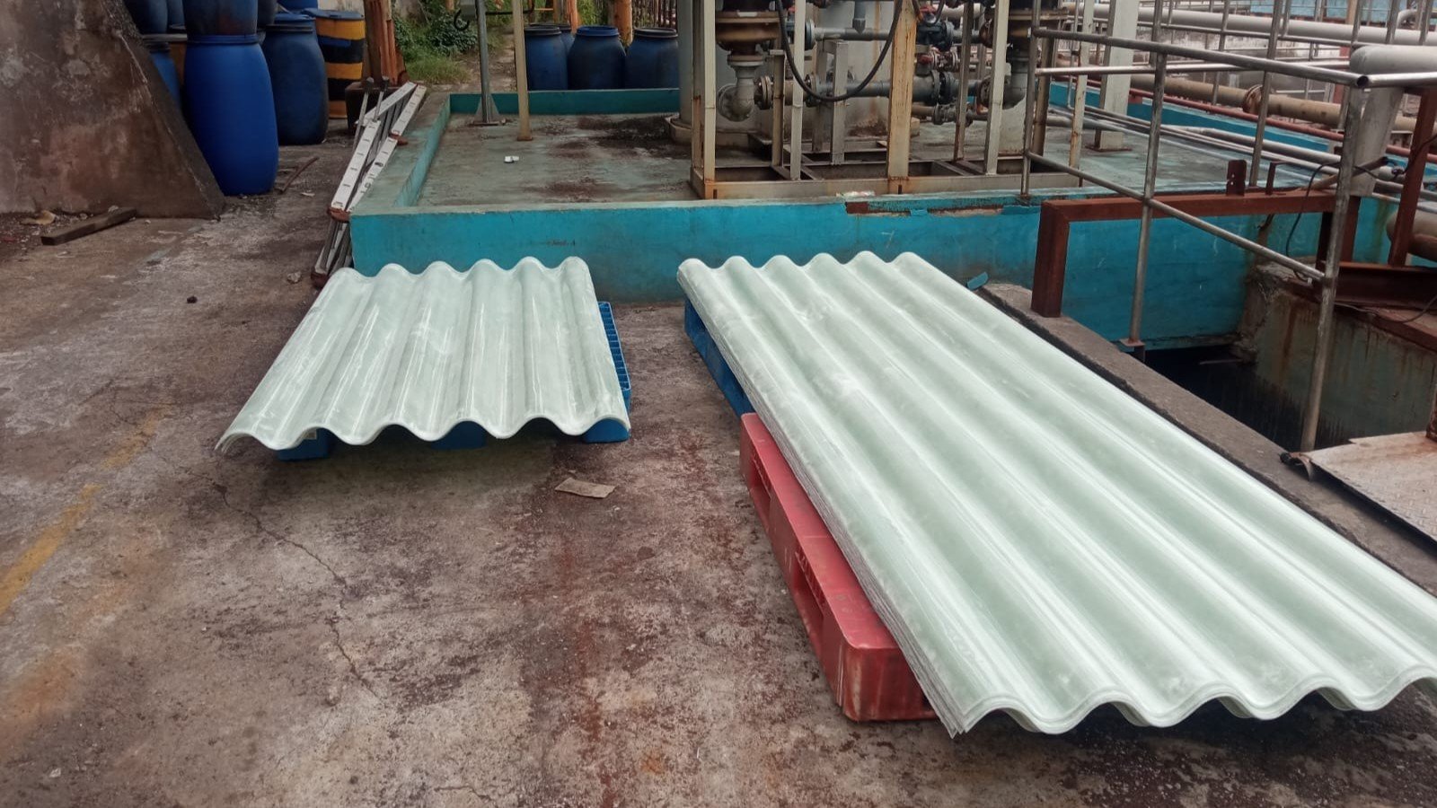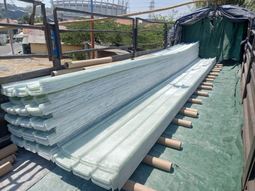 Atap fiberglass bergelombang kuat dan tahan panas, ideal untuk bangunan industri maupun komersial.